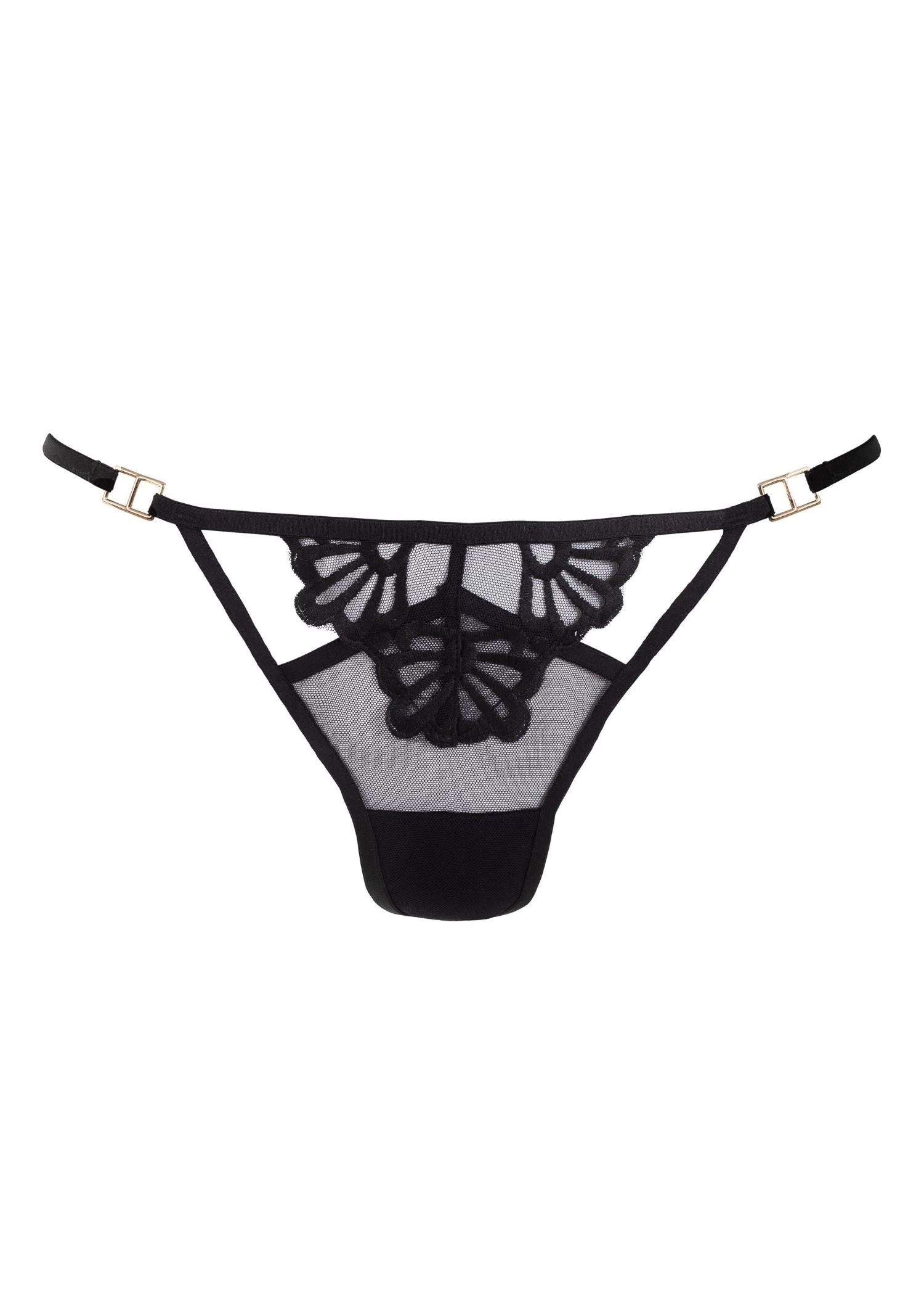 Guaranteed to make a statement, the Caramella thong has bold embroidery patterns with provocative cut-outs accented with gold-tone detailing. Pair with the Caramella Bra for the complete look.