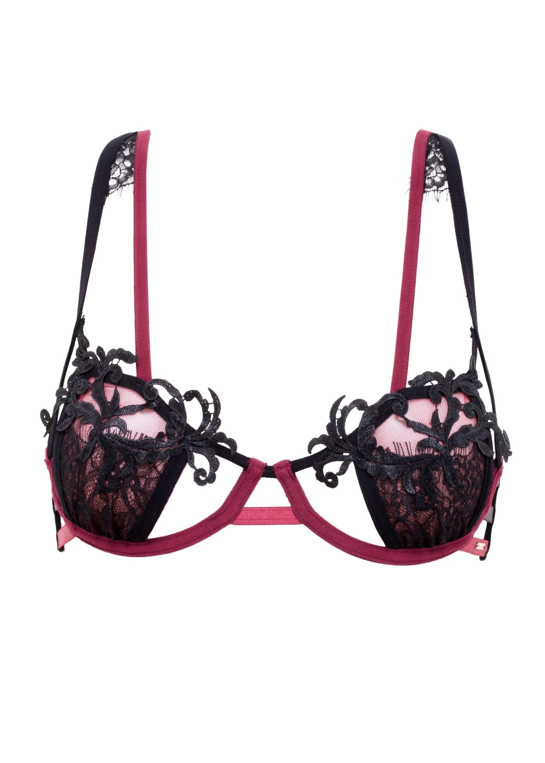 Whirls of guipure-lace embellishments highlight the cups of this baroque-inspired bra. Combining eyelash lace, fine mesh, and soft boning to recreate the luxurious french experience.