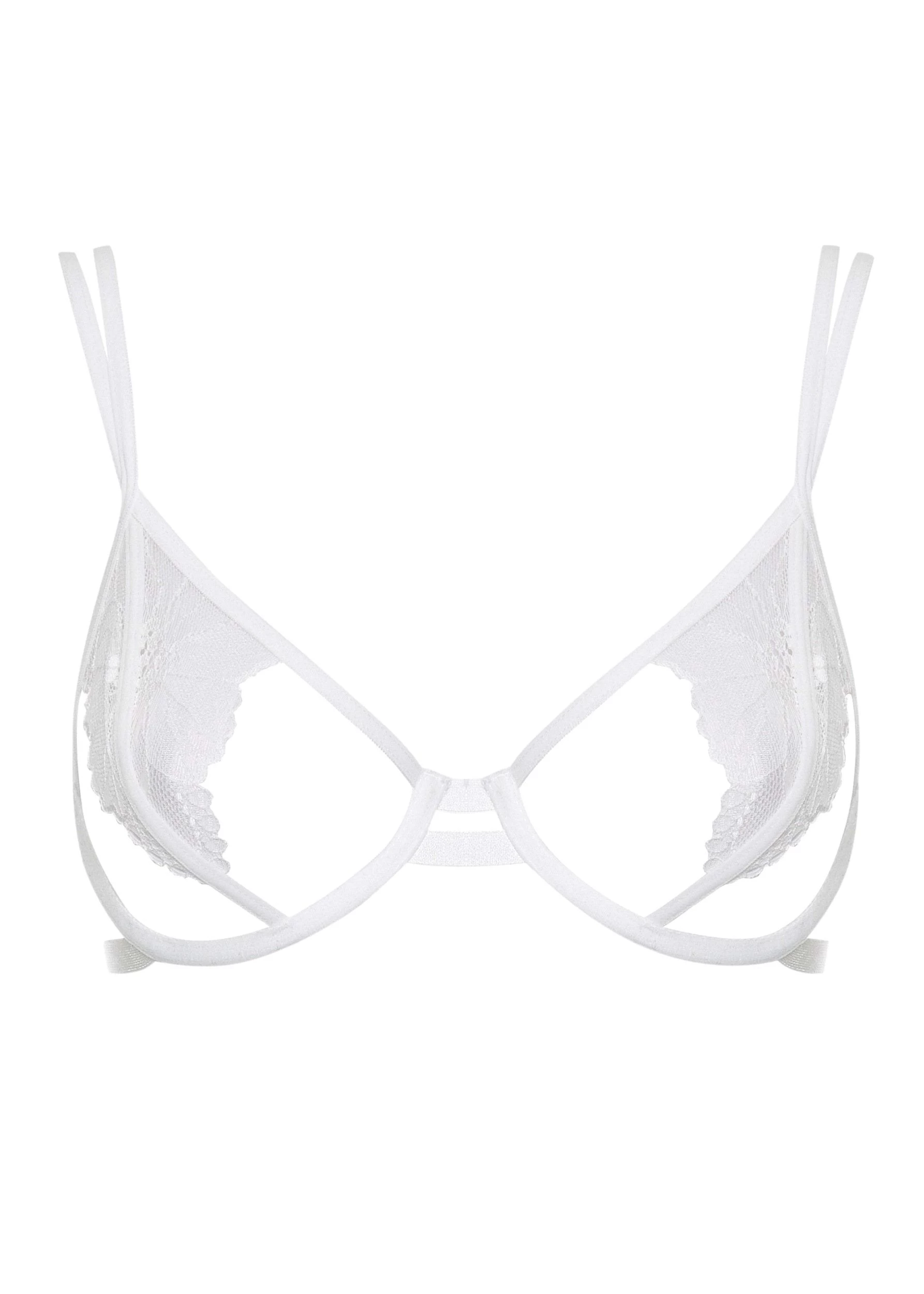 This classic ivory Bluebella Emerson Open Cup Lace Bra with double straps caging the back is the perfect choice. With the gold hardware details and luxurious lace, this piece is not to be missed. Wear it with the matching Emerson Lace Back Brief or Thong and Lace Harness.