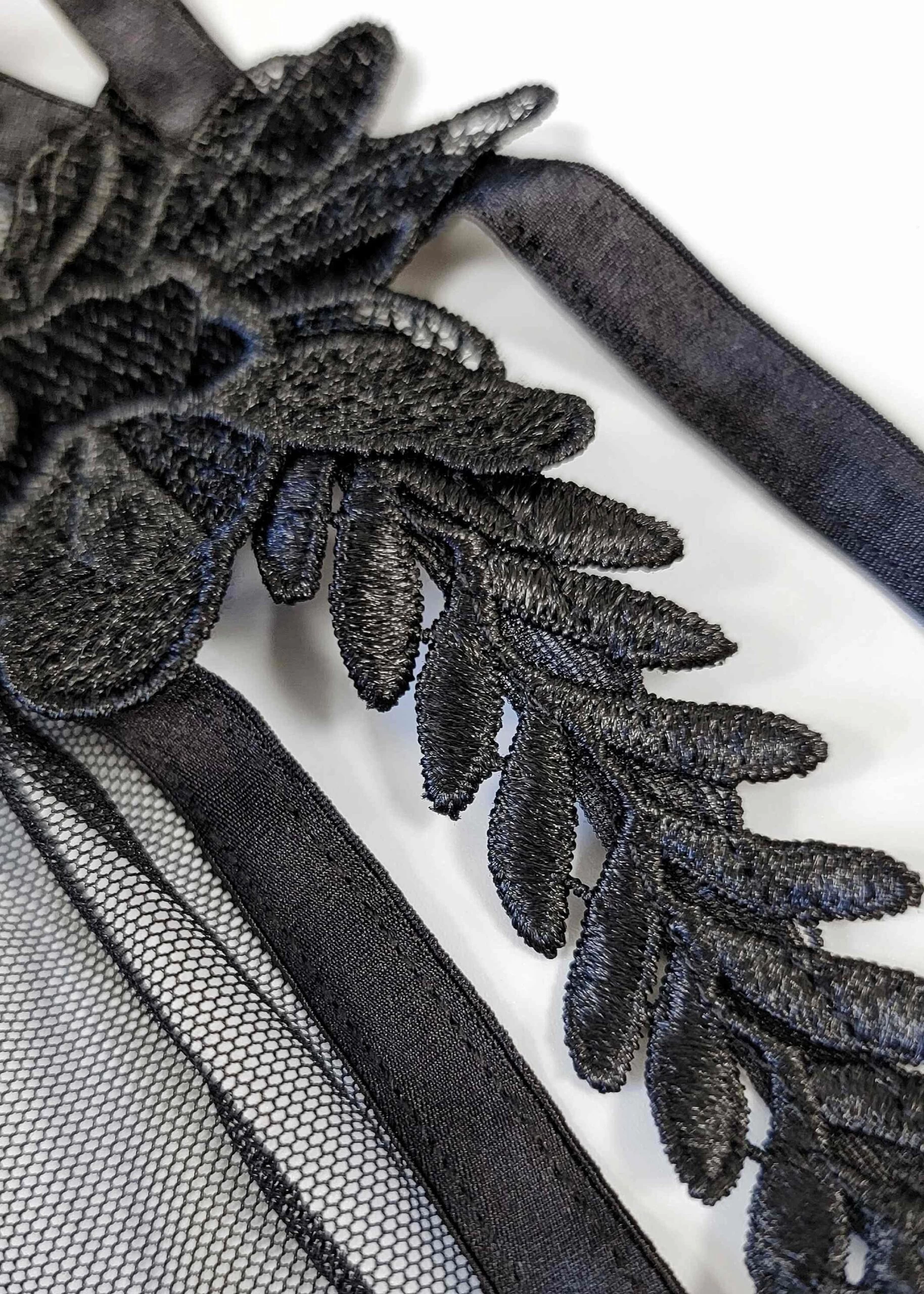 The Lennon is an ethereal combination of floral embroidery and textural contrasts. Delicate floral embellishments at the cups are contrasted with provocative sheer mesh and cut-outs for a contemporary look.