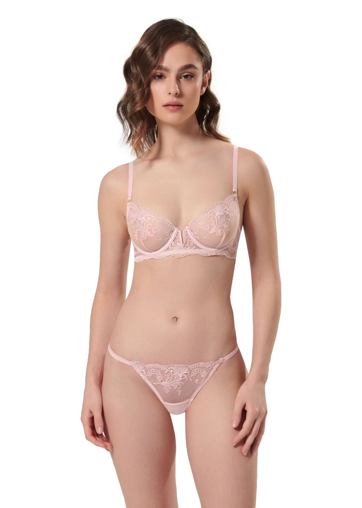 Offering a masterclass in intricate embroidery, it’s easy to see what makes the Marseille bra the absolute bestseller. This classic piece achieves a distinctively alluring look thanks to its perfectly executed mixture of conceal-and-reveal elements, while the gorgeous hue ensures that it appeals to those not afraid to experiment with their lingerie choices. Style with other Marseille designs for a look that spells out confidence from afar.