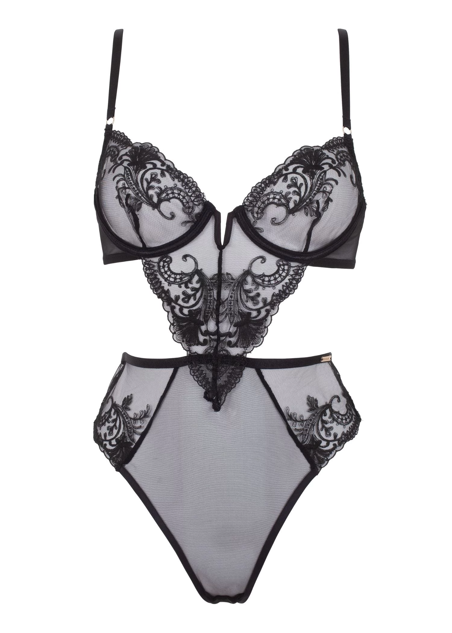 The Marseille Body features a cut-out bodysuit design with underwired support that accentuates your curves, matched with a delicate floral embroidery for a feminine and classy look. This body can be worn in as part of a sexy lingerie set, or as outwear with high-waisted shorts and blazer on top.