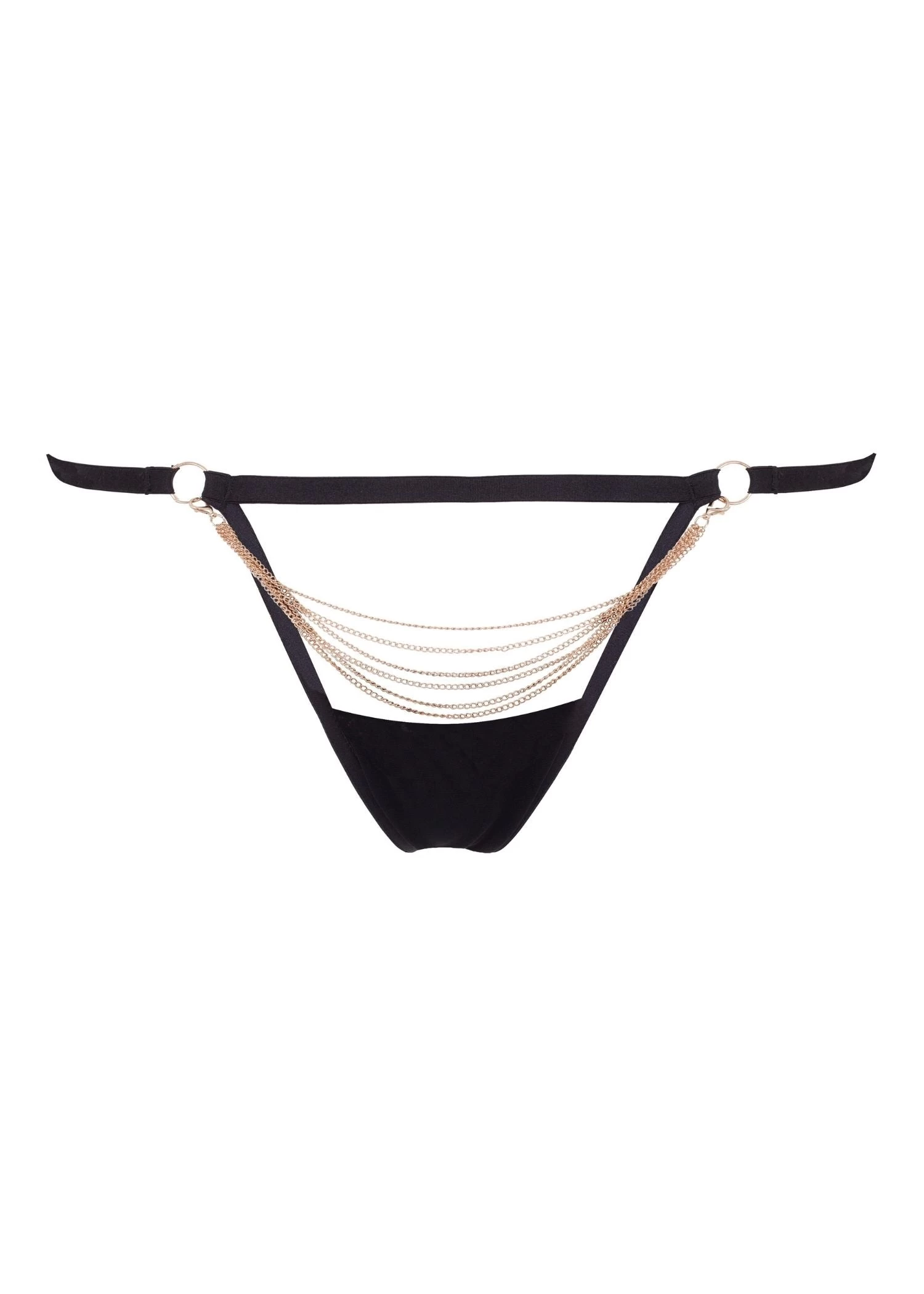 A minimal yet striking statement piece. The Oriana Thong features an open front panel with detachable gold-tone chains against chic slimline strapping. Wear with the Oriana Open Bra for a striking look.