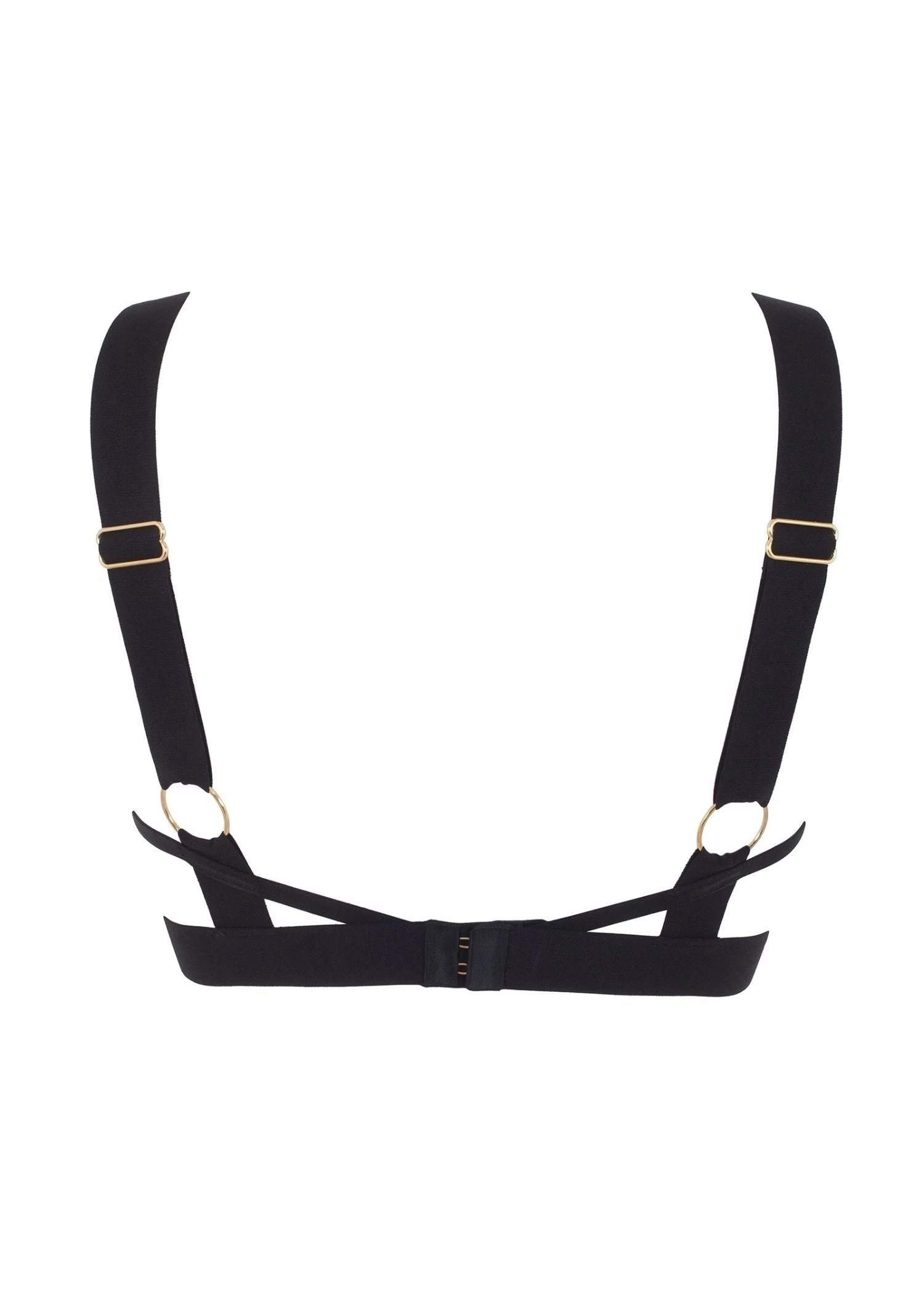 Bluebella’s contemporary bondage style bra featuring thick directional elastic straps across the cups, underwired for support. This bold piece brings confidence and attitude to the next level.