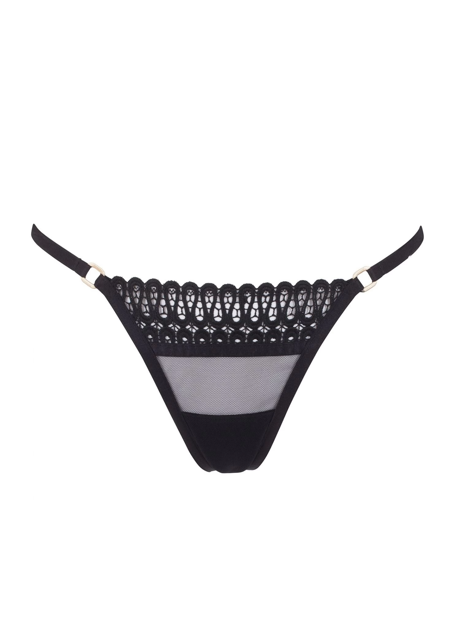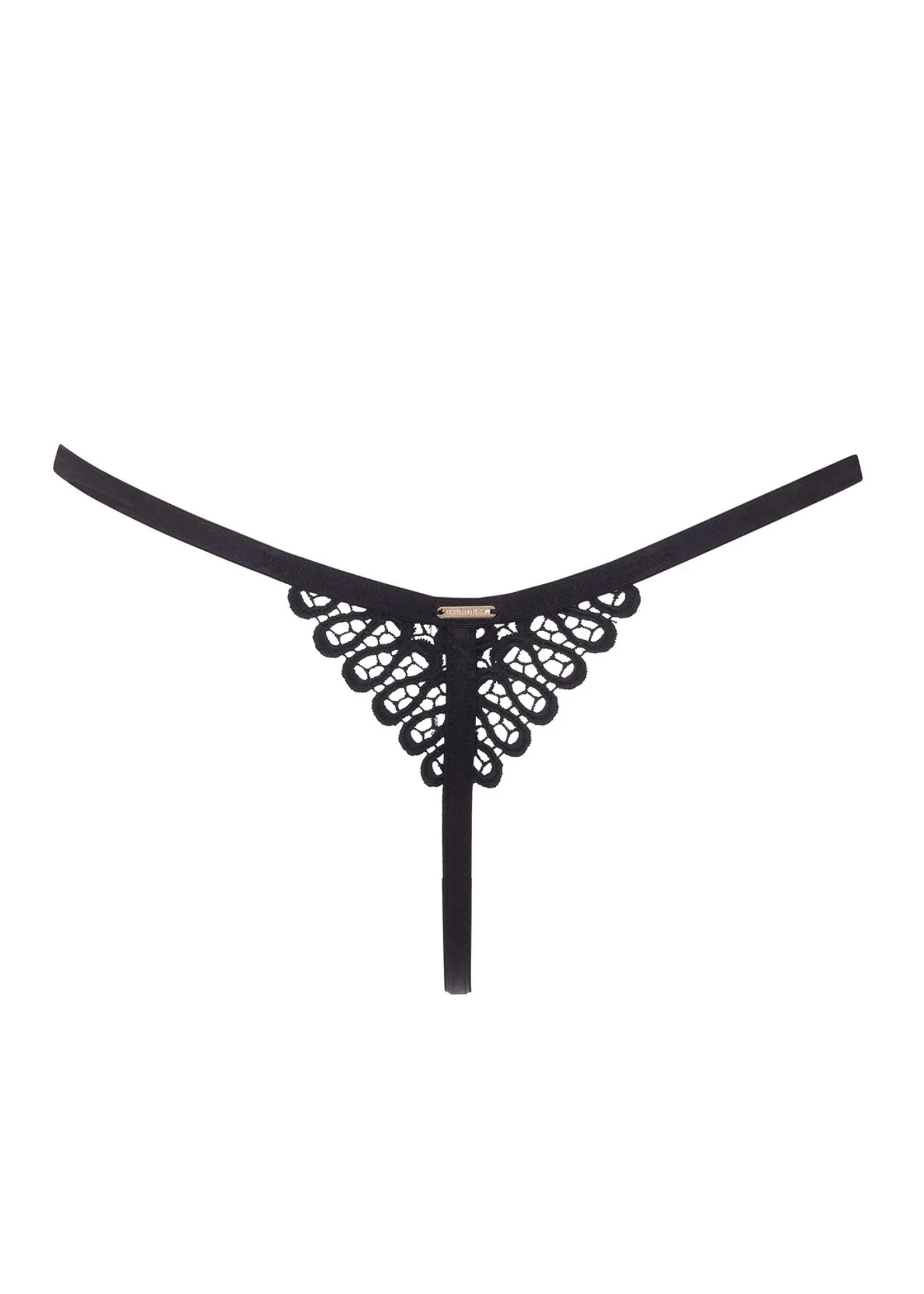 The Tallulah Thong is a practical black thong that can be worn everyday. It features crochet-like embroidery, which gives it a stylish look. The Tallulah Thong can also be styled with the matching Tallulah bra, for an irresistibly seductive look.