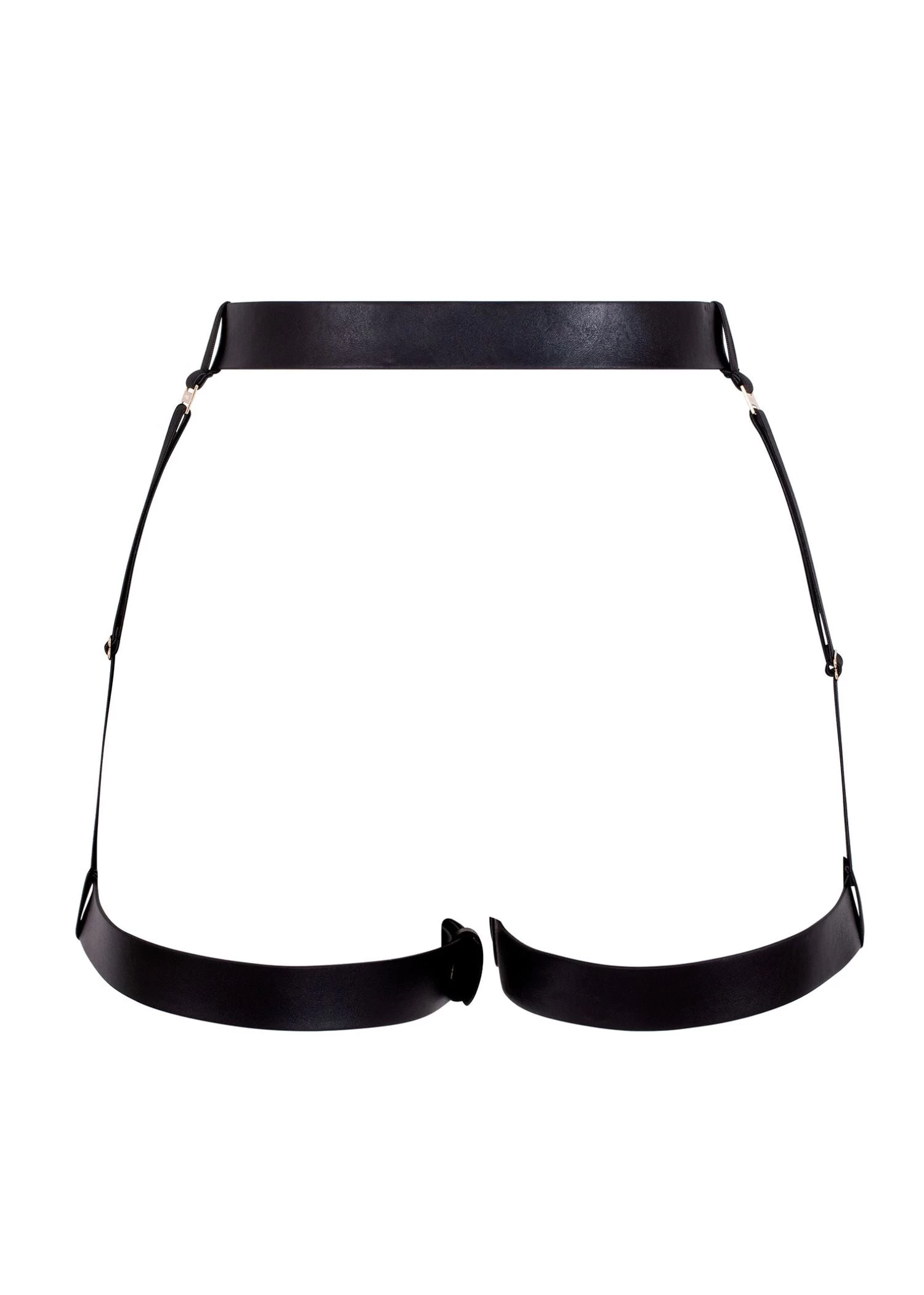 Nothing spells out elegant provocation quite like a touch of smooth faux leather. The Zadie thigh harness takes things back to seductive basics, offering a minimal silhouette signed off with our signature gold-tone hardware. Layer this power piece over one of our thongs or style it solo – a striking effect is guaranteed either way.
